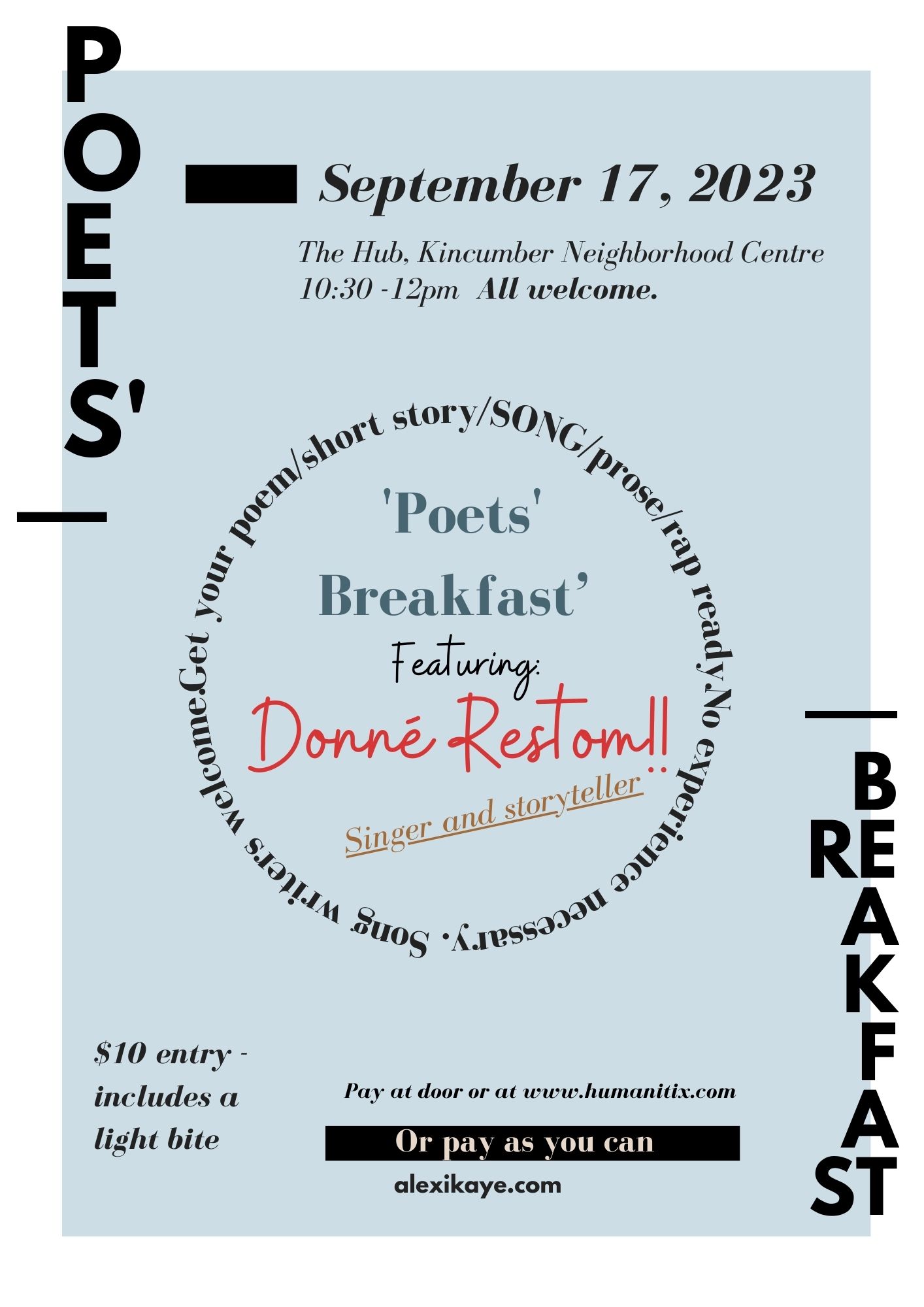 Tickets: Online at https://events.humanitix.com/poets-breakfast-september-17th-at-the-kincumber-neighborhood-centre